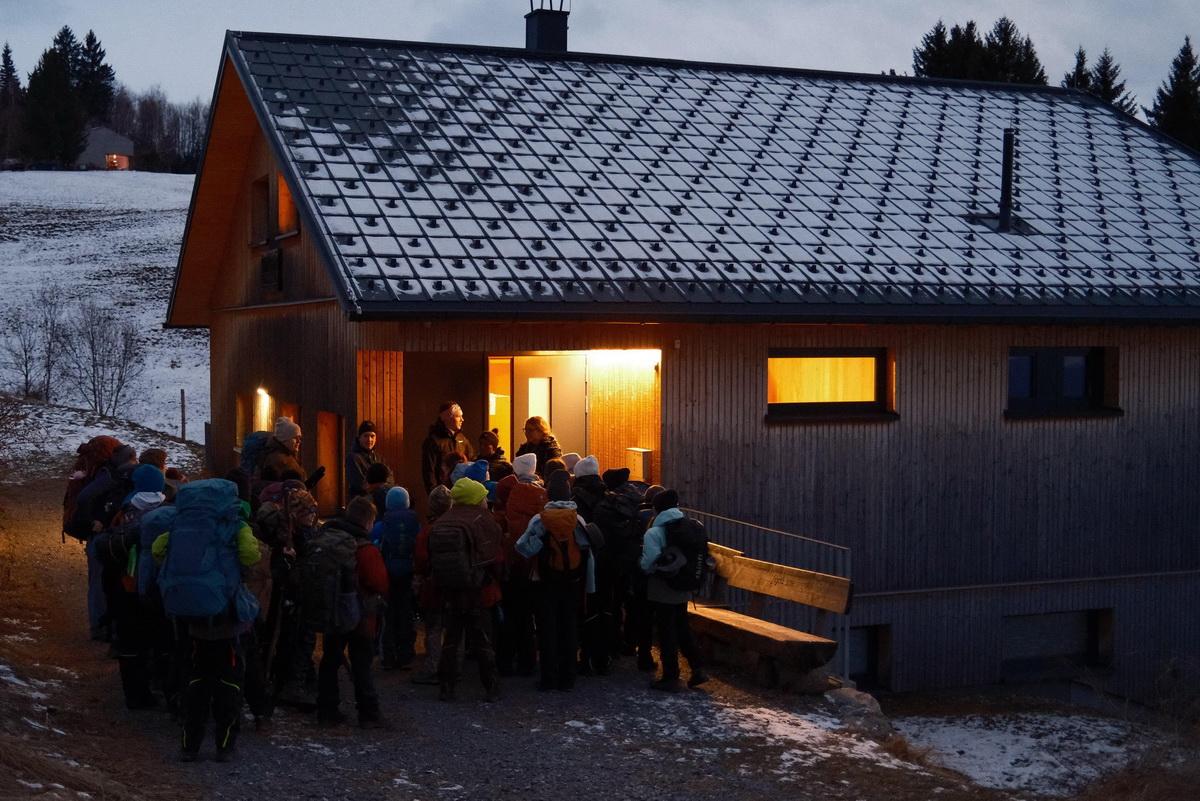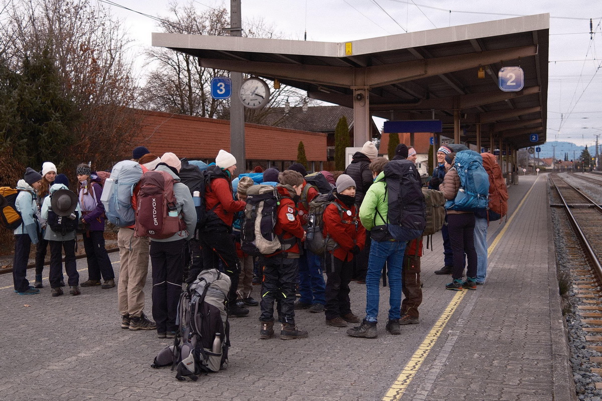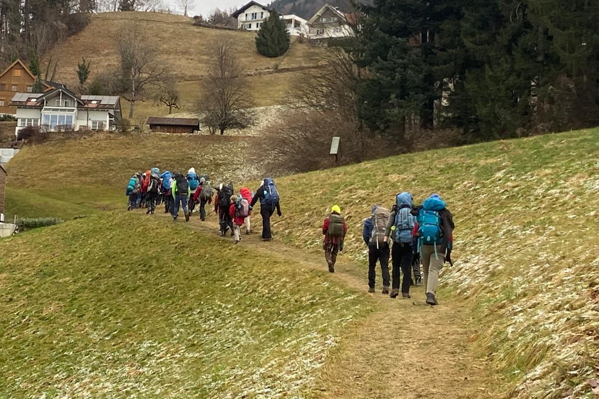 Am ersten Tag sind wir vom Bahnhof Rankweil nach Furx gelaufen, ganz im trockenen und ohne Schnee. Übernachtet haben wir im gemütlichen Haus Ratti, wo wir uns nach der Wanderung aufwärmen konnten. Zum Abendessen gab es einen wärmenden Gemüseeintopf, und am Abend haben wir gemeinsam Kartenspiele gespielt.